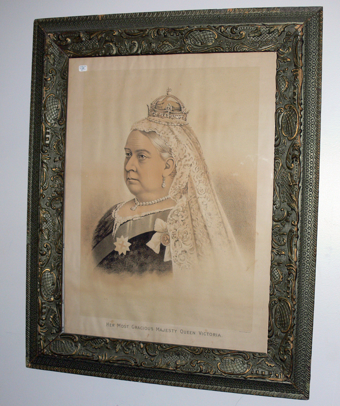 At the annual book sale, we always have a large and varied selection of books on royalty. In addition, this year we have a special treasure available: a beautiful large framed antique lithograph of Queen Victoria.